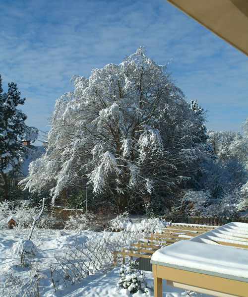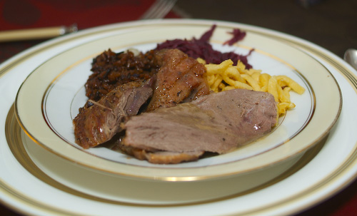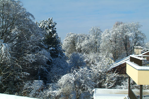 We brought them back to the house and a week of gluttony began! On the 23rd, the snow arrived and it continued snowing until Christmas day, about 8” in total and the first white Christmas in Basel for many, many years. It was the perfect setting for a traditional Swiss Christmas dinner – roast goose, spaetzle, and red cabbage.
